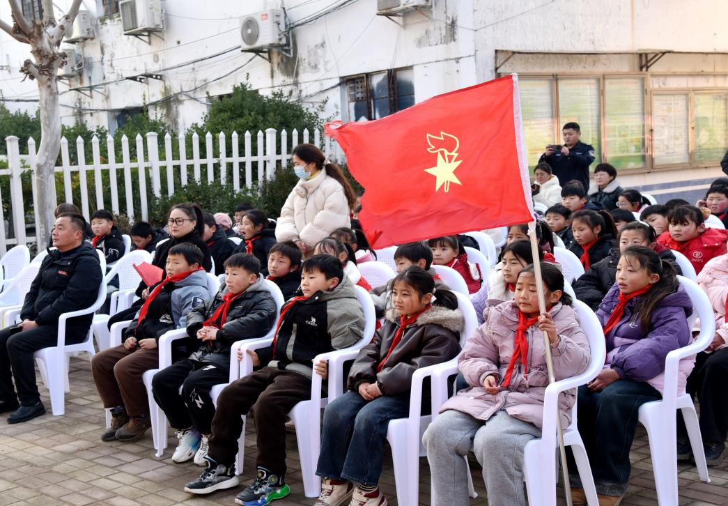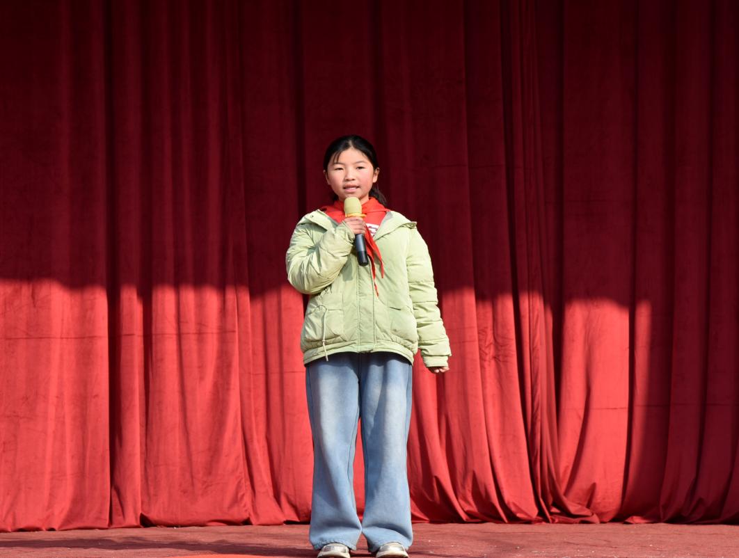 学生朗诵《中国红》《盛世中国》《我喜欢红色》《中国年》《读中国》等篇目,字字句句勾勒出祖国山河的壮阔与繁荣盛世的气象,抒发了对祖国母亲的深切热爱与由衷赞美。《党是太阳我是花》《我是少年,强国有我》满含童真与赤诚,传递出少年儿童心向党的坚定信念和担当民族复兴大任的远大志向。《如果信仰有颜色》《我们是新时代的好少年》《中国梦少年梦》将个人理想融入时代洪流,诉说着新时代少年对信仰的坚守与对美好未来的憧憬。《蹄声迎春》《喜迎元旦》则洋溢着辞旧迎新的喜悦氛围,将元旦佳节的热闹与温馨娓娓道来。