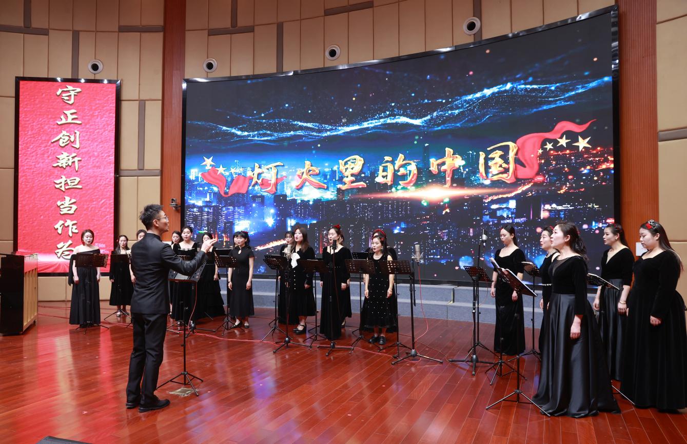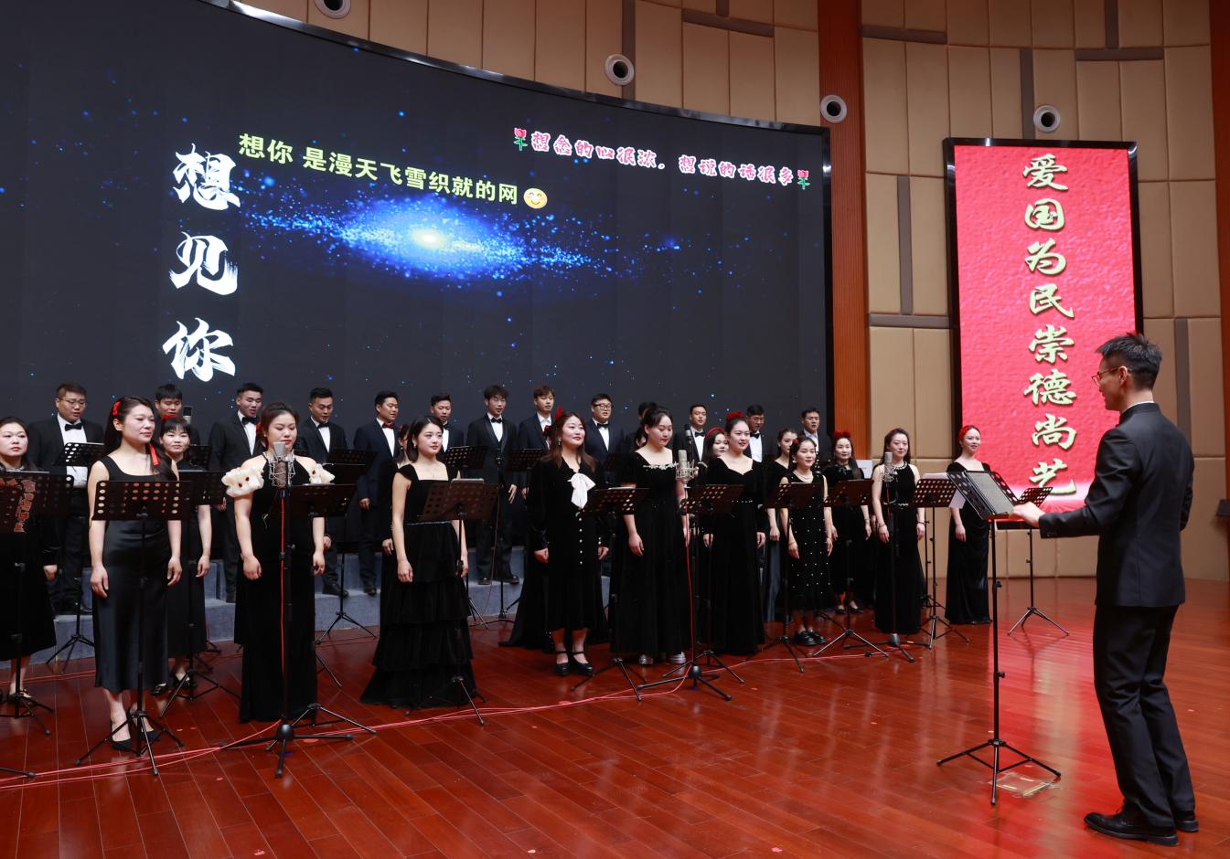 当晚,微宣讲厅座无虚席。《想见你想见你想见你》拉开序幕,《故乡的云》《红旗飘飘》《灯火里的中国》等12首曲目依次呈现。演出以合唱为主体,配合专业指挥与钢琴伴奏,传统与现代交融,艺术与情感共鸣。终曲《歌唱祖国》引发全场合唱,将气氛推向高潮。