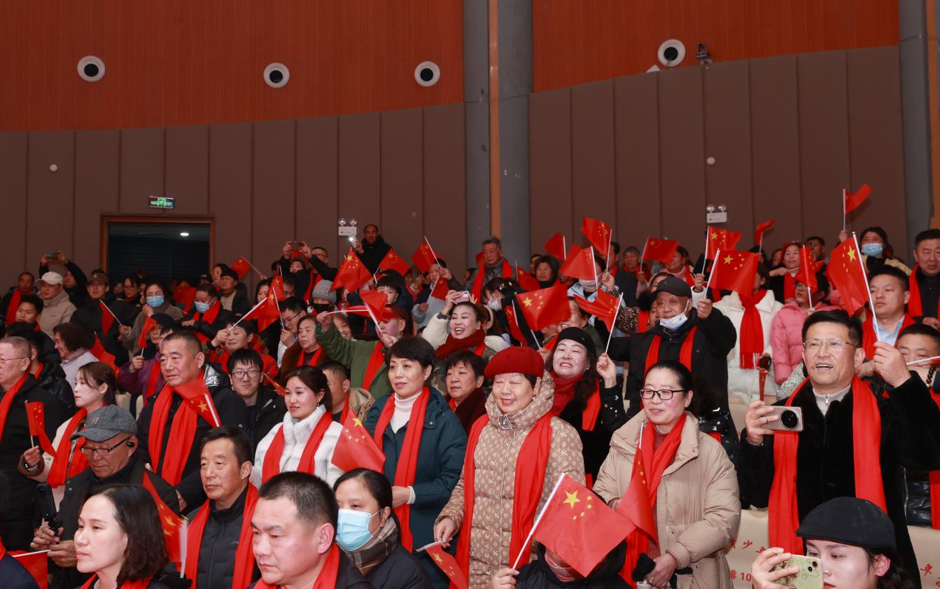 图为现场观众挥举旗帜合唱《歌唱祖国》。吴天元 摄