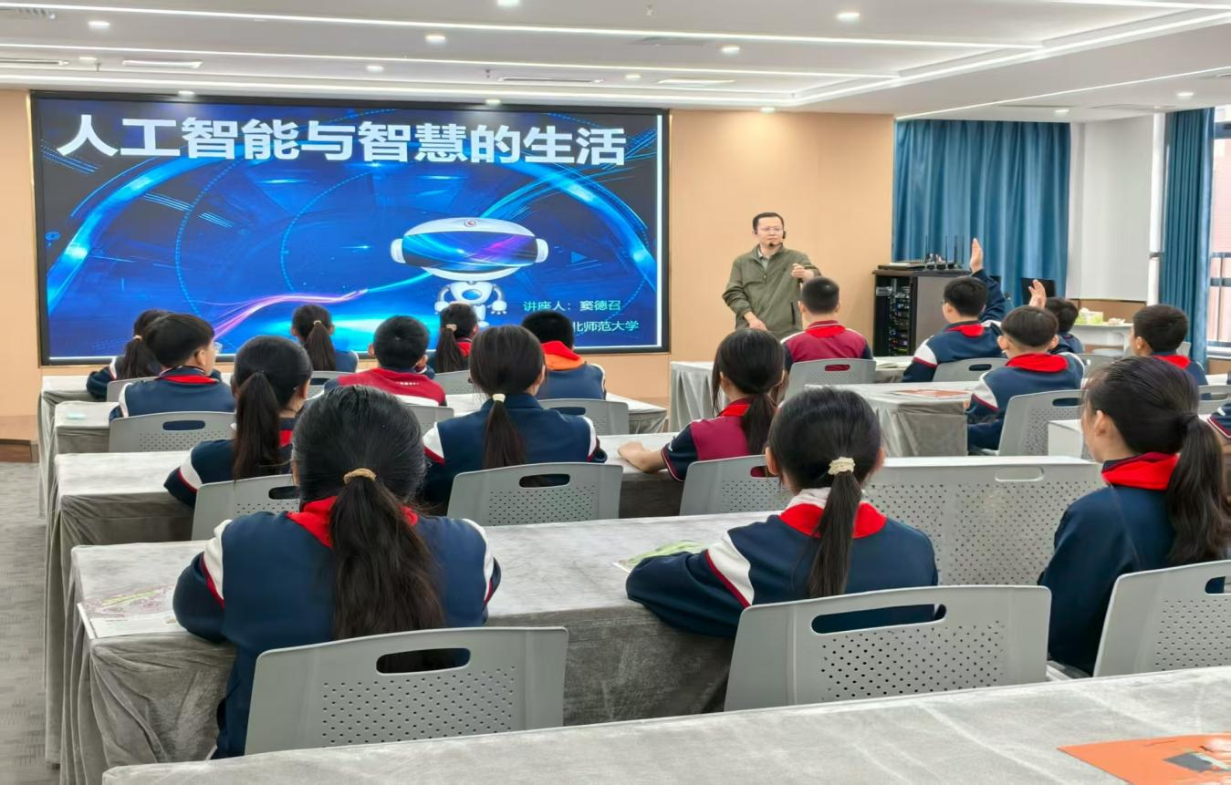 讲座现场,窦老师以“人工智能与智慧的生活”为题,运用生动形象的语言和丰富多样的案例,深入浅出地讲解了人工智能的基本概念、三大要素及其在日常生活中的广泛应用。通过展示智能机器人、语音识别系统等前沿科技成果,激发了学生们对人工智能的浓厚兴趣,学生们积极参与互动,现场气氛热烈。