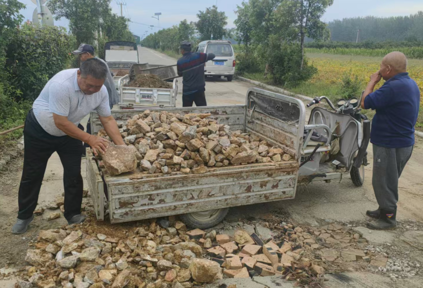 修补过程中,大家分工协作,有的清理碎石、有的填补坑洼,尽管天气炎热,但每个人都干劲十足。经过连续几天的努力,原本凹凸不平的路面变得平整顺畅,居民出行更加安全便捷。“以前骑车经过这里总要颠簸几下,现在路修好了,走着也放心多了!”家住徐楼村李阿姨高兴地说道。