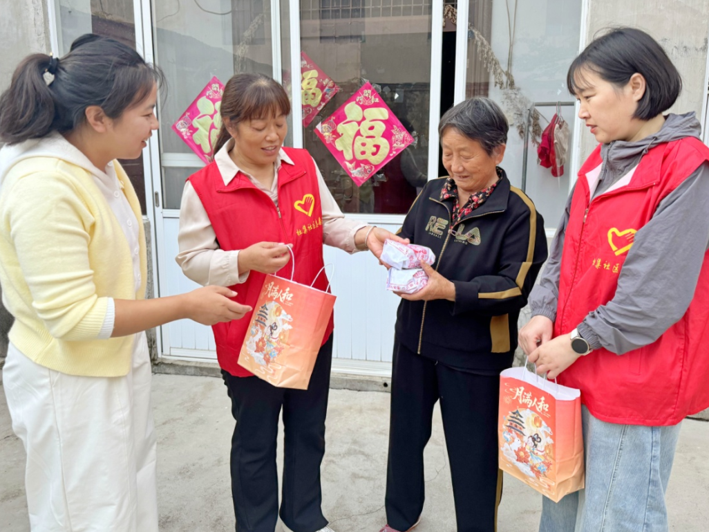 经过一天的忙碌,大家将冷却后的月饼精心装盒。傍晚时分,社区工作人员、居民代表与志愿者带着月饼礼盒,逐一走访社区内的孤寡老人。每到一户,工作人员都详细询问老人的身体状况和生活需求,帮老人打扫房间、整理衣物、唠家常,让老人们在双节之际感受到家人般的关怀。