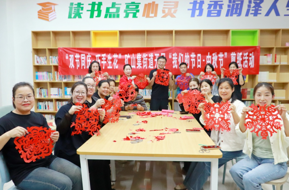 9月29日下午,杜集区矿山集街道依托公共文化空间,举办了“双节同庆 巧手生花”主题剪纸活动,特邀安徽省级非遗“宗氏剪纸”传承人韩学敏老师现场教学。