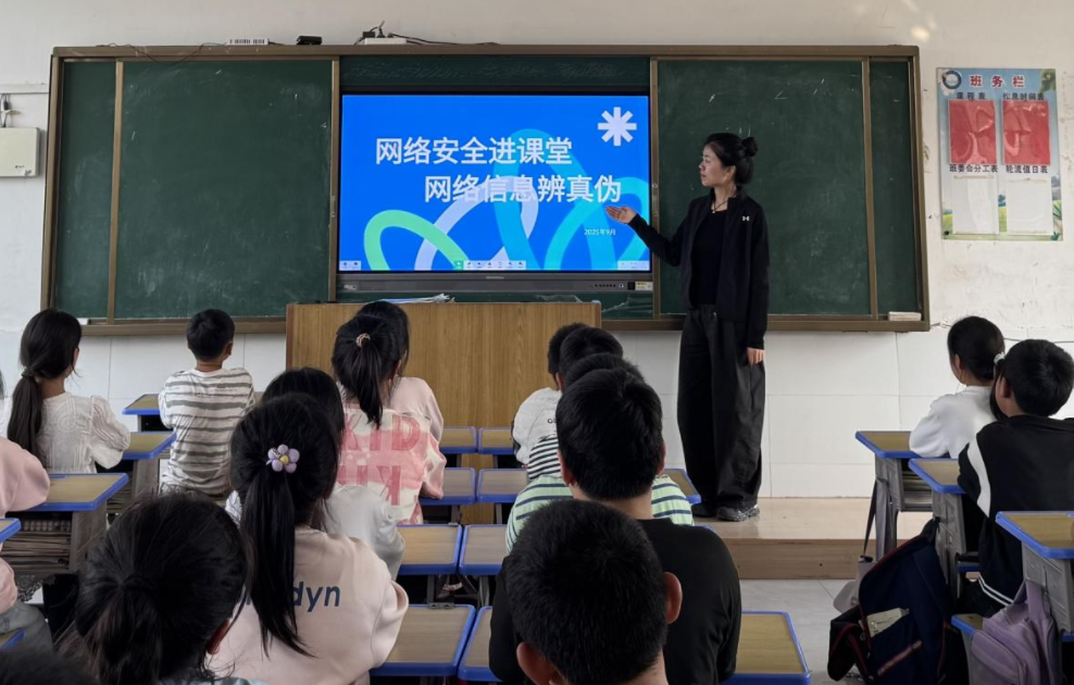 校园课堂则主打“沉浸式教学”。在葛集镇中心小学,志愿者通过“网络信息辨真伪”情景模拟,让学生们在角色扮演中学会抵制网络欺凌、辨别不良信息,同时针对未成年人特点,简化举报流程讲解。“遇到有人在网上发咱们学校的不实信息,或者有人欺负同学发恶意评论,大家可以告诉老师,老师会通过举报通道提交,保护大家的网络安全。”