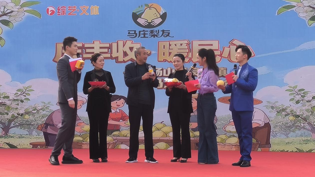 演出期间,活动重点设置“马庄梨友”品牌推介环节。马庄村第一书记袁兴涛上台,不仅带来新鲜饱满的酥梨供主持人现场品尝,还开箱展示梨膏、梨味棒棒糖等深加工产品,通过直播镜头向全国网友直观呈现品牌特色与产品品质,进一步扩大“马庄梨友”的知名度与市场影响力。此外,国家级非物质文化遗产四平调经典选段《花为媒·报花名》的上演,也为活动注入浓厚的文化底蕴,展现马庄村在发展经济的同时,对传统文化的传承与弘扬。