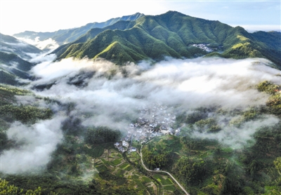 日前,秋雨初歇的安徽省黄山市黟县宏村镇木坑竹海景区云海飘荡,萦绕于漫山竹林之中,鳞次栉比的徽派民居与流动云瀑交织,宛若诗意仙境。