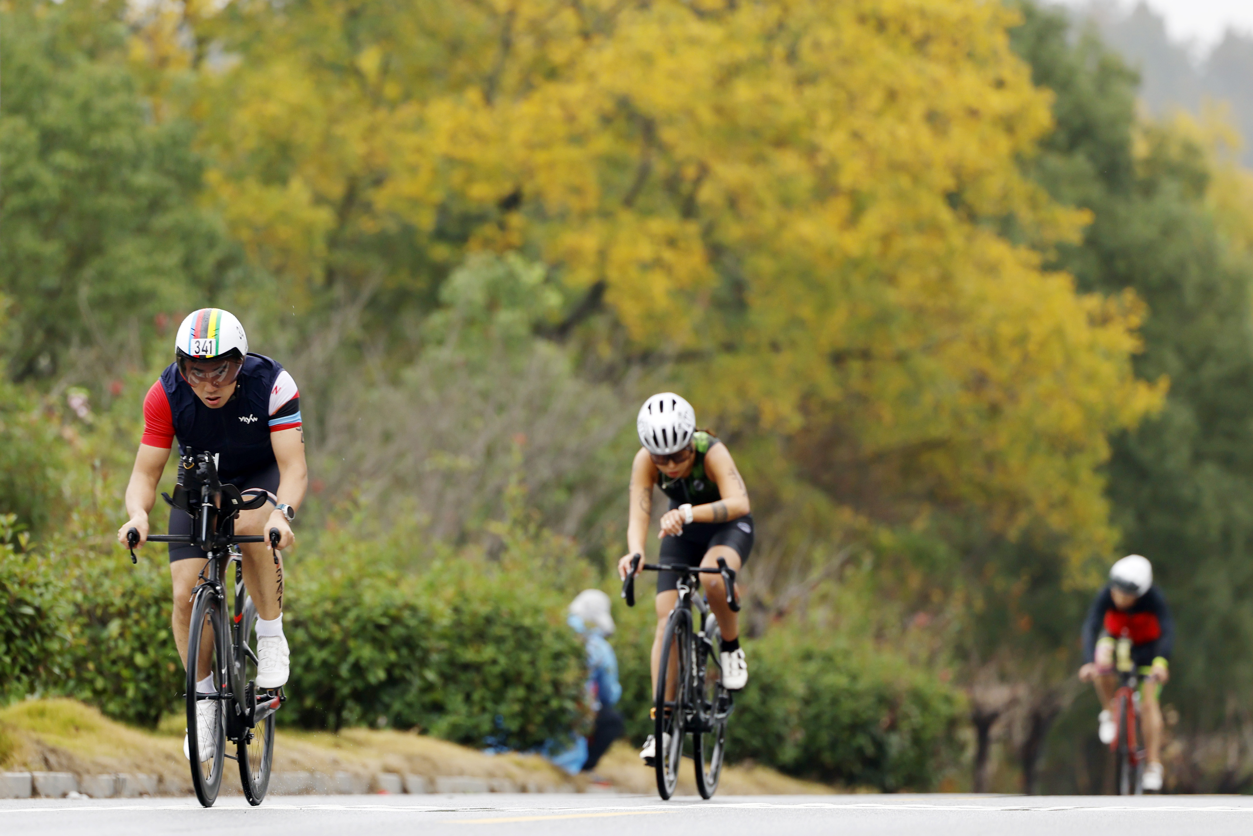 市场星报、安徽财经网(www.ahcaijing.com)、掌中安徽讯 (施亚磊) 2025年11月9日,安徽省黄山市黄山区太平湖镇,参赛运动员在铁人三项比赛中。