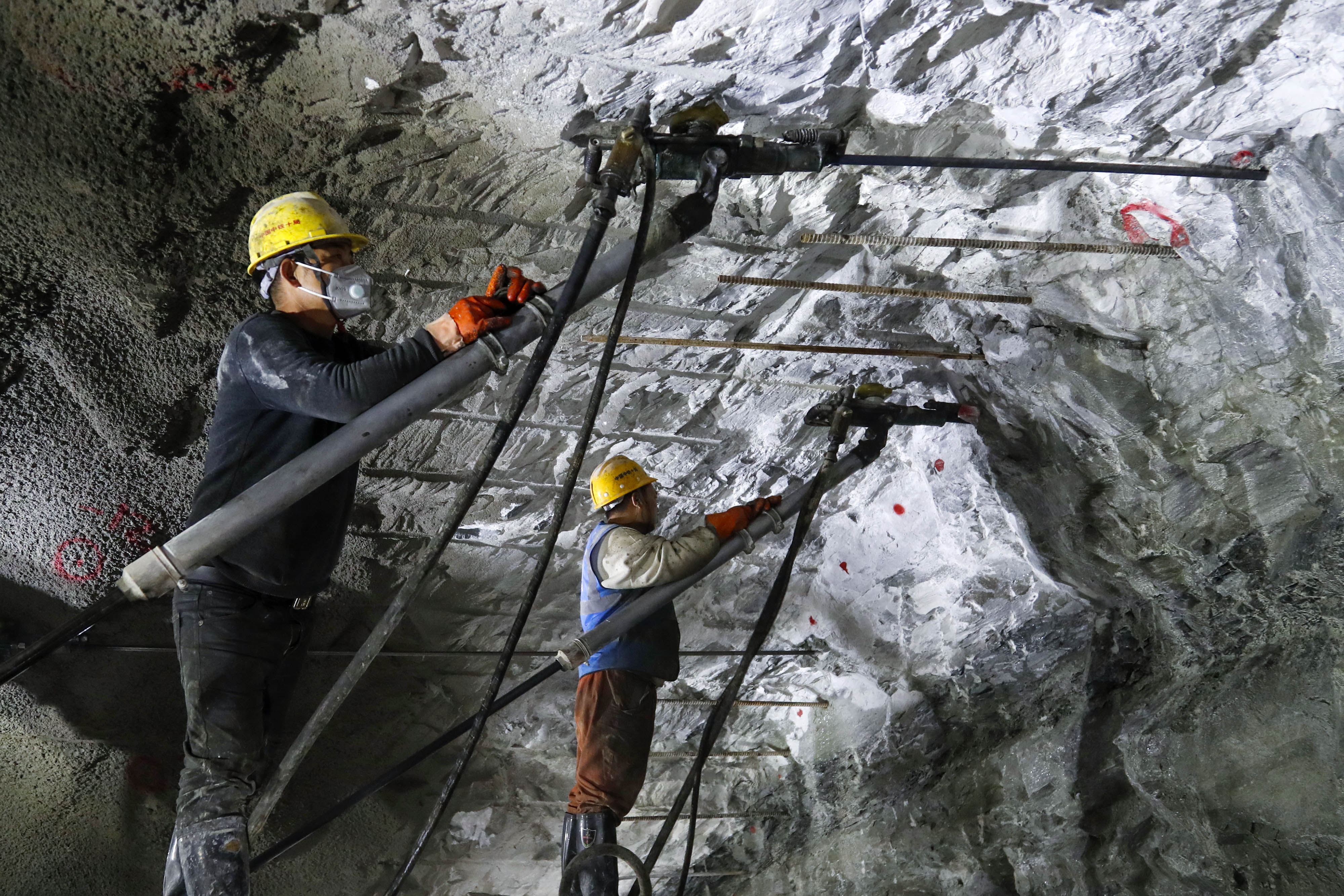 当日,在安徽省黄山市黄山区汤口镇的黄山旅游T1线项目施工现场,工地上机械轰鸣,施工人员操作着各类设备,在隧道掘进关键工段协同配合,全力推进工程进度。