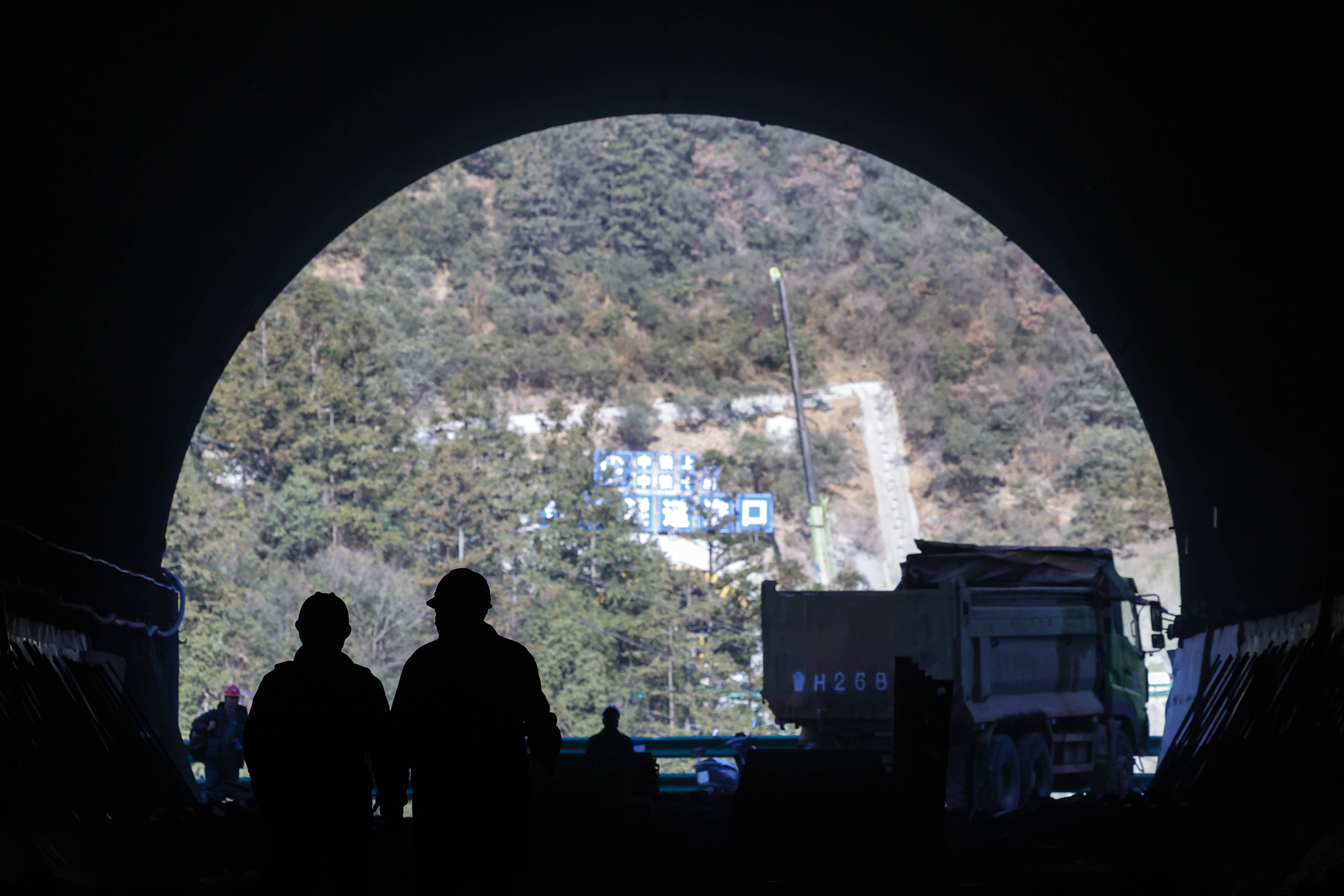 2025年12月7日,在安徽省黄山市黄山区汤口镇的中铁上投黄山旅游T1线项目施工现场,施工人员正在有序作业。