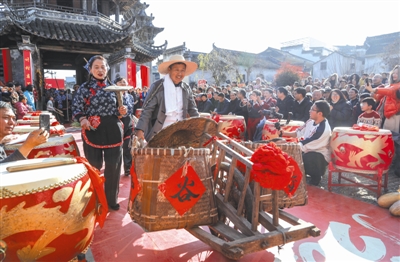 当日,一场充满乡土气息的“村T”秀在安徽省黄山市歙县许村镇许村火热上演。来自全县各村12支队伍近200名村民成为T台主角,他们自编自导自演,通过走秀的形式展示各类农具、农产品和文旅产品,生动演绎日常劳作与乡村生活场景,在喜庆的氛围中共同迎接新年的到来。施亚磊 顾雪菲