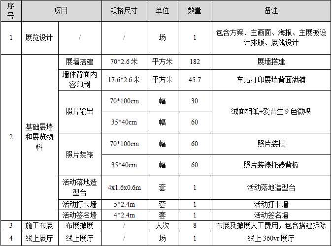 采购需求:因公司业务需要,采购一项摄影展布展服务。