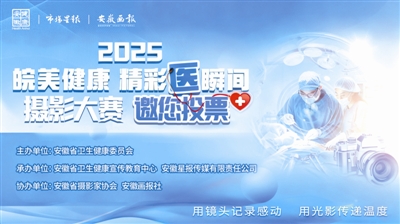 作为深入贯彻健康中国建设要求、落实健康安徽建设部署的重要活动,本次大赛由安徽省卫生健康委员会主办、安徽省卫生健康宣传教育中心承办,安徽省摄影家协会与安徽画报社协办。自10月16日网络投票通道开启以来,入围作品通过市场星报、安徽画报、安徽省卫生健康委员会官方微信公众号同步展示,急救现场的生死时速、门诊诊疗的耐心沟通、基层服务的便民暖心、中医药传承的创新实践等真实场景,凭借真挚情感与专业呈现收获全网热捧,每一票都承载着公众对医务工作者“敬佑生命、救死扶伤、甘于奉献、大爱无疆” 职业精神的认可与敬意。