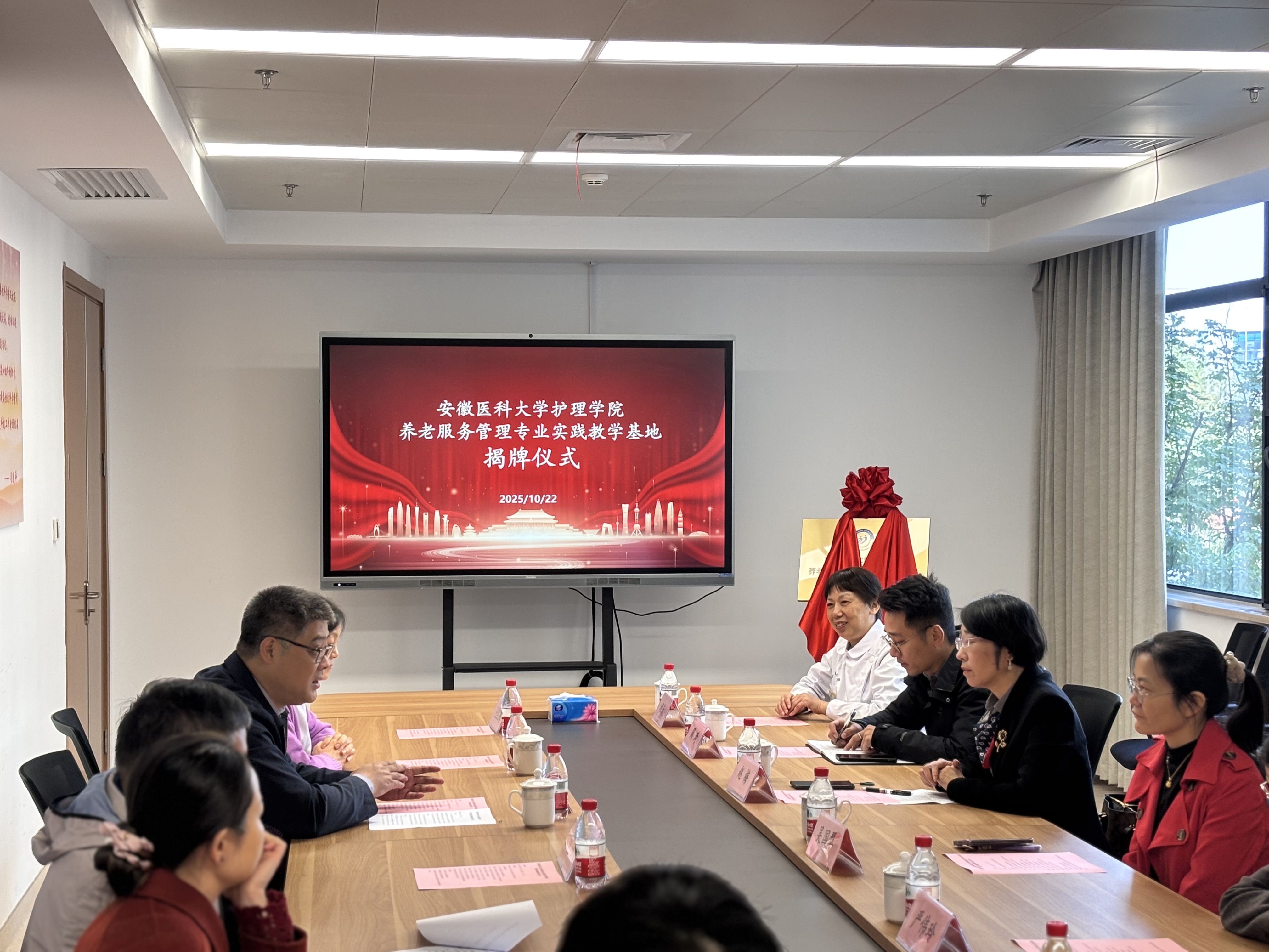 揭牌仪式上,沈泌对赵梅院长一行表示欢迎,并介绍了老年护理院的建设发展、专科特色及近年来在医教研一体化建设中取得的成果。他说,近年来,市委、市政府、市卫健委高度重视护理院高质量发展,特别是在人口老龄化的大背景下,养老服务的人才培养、科研水平的提升、服务能力的建设,是医养结合事业高质量发展的核心。合肥市二院老年护理院作为省内第一家由公立医院主办的医养结合机构,是进一步加强院校合作,深化医教协同,全面提升医科院校和医养结合机构服务能力的重大部署。此次授牌仪式,是“学术优势”与“实践需求”的精准对接,是“高校智慧”与“医院发展”的深度融合,将为深化医教协同、推动医疗卫生事业发展注入新的活力,双方的合作共赢,必将为合肥市医养结合事业高质量发展注入新的动能。
