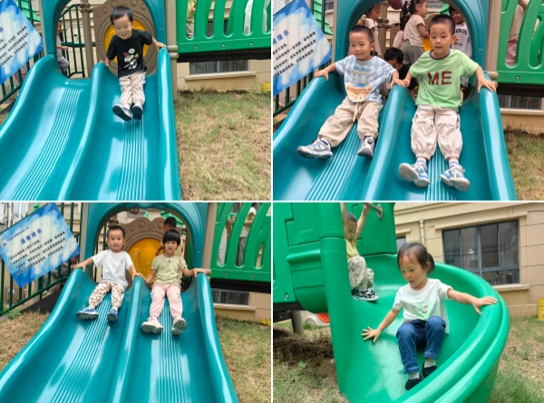 来到操场,孩子们的目光就被那座大大的滑滑梯牢牢吸引,忍不住挥着小手欢呼“我要玩滑滑梯” ,满是激动的小模样。在老师的轻声引导下,孩子们排成了小队伍,一个一个上台阶,有序的往下滑,整个过程满是快乐。