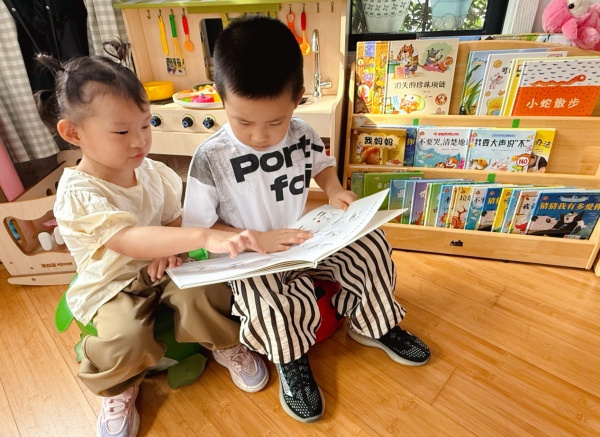 清晨,大班的哥哥姐姐主动牵起小班弟弟妹妹的小手,以“晨间小搭档”的身份,带领弟弟妹妹玩玩具、看图书,让小班幼儿在趣味互动中快速融入晨间活动。