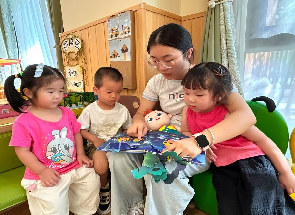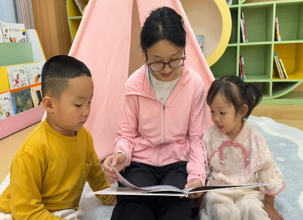 托小班的宝贝们开启了“古诗律动”,孩子们跟着老师的节奏,用童真清晰的普通话去歌唱。在“动”与“说”的结合中,让普通话学习充满乐趣。此外,师幼共读绘本时,老师用标准普通话娓娓道来,孩子们专注跟读,在温馨互动中开启语言表达的启蒙之旅。