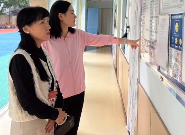 2025年10月14日,庐阳区第四督学责任区督学张秀兰走进辖区内的合肥市直属机关幼儿园,开展专项检查与园所参观工作。检查过程中,幼儿园保教主任冯瑞全程陪同,带领张秀兰有序参观园所环境。