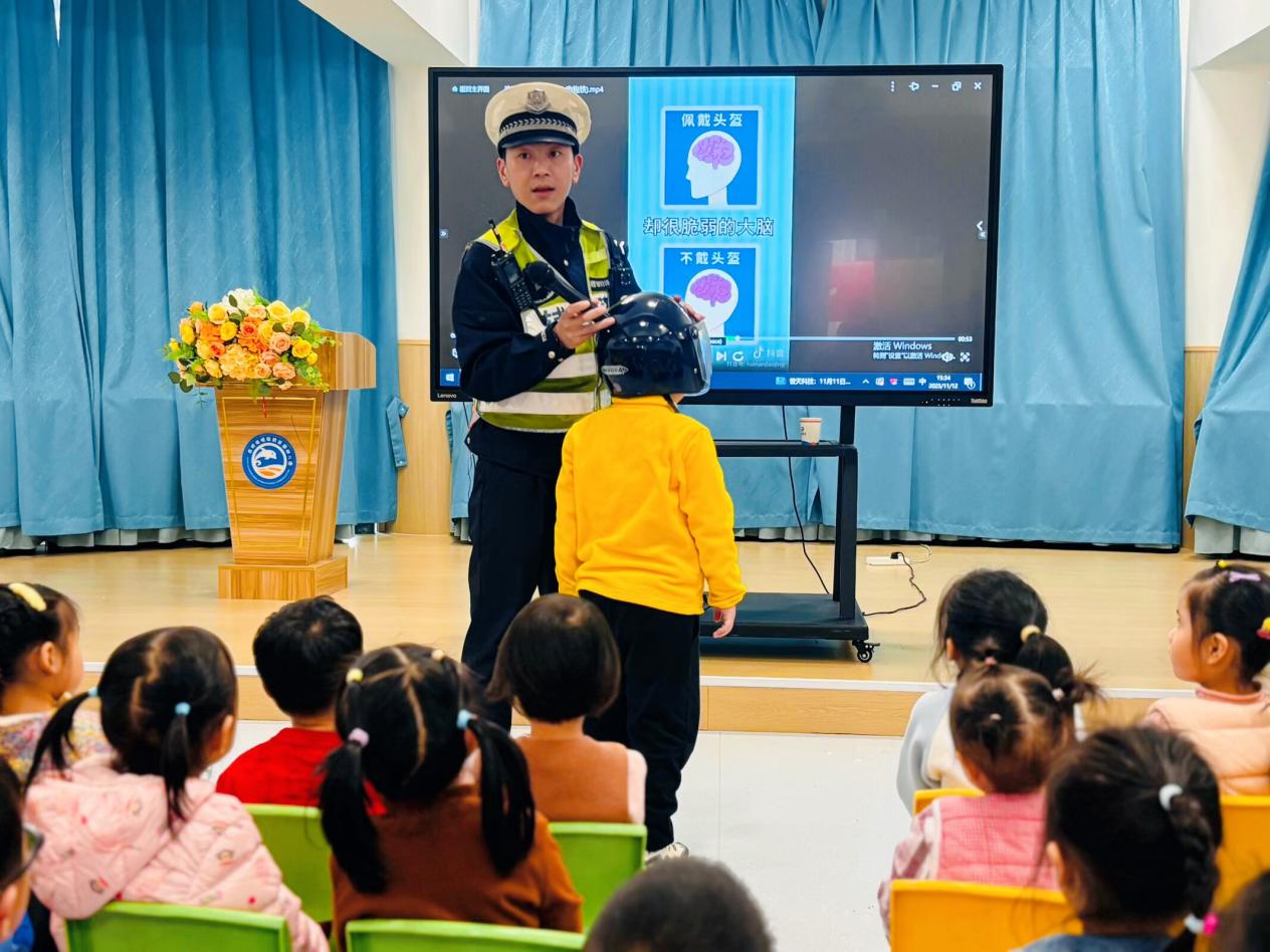 为深化“平安校园”建设,切实提升幼儿交通安全意识与自我保护能力,2025年11月12日,合肥经济技术开发区交警大队金警官受邀走进合肥海恒教育芙蓉幼儿园,为孩子们带来了一场生动有趣、寓教于乐的交通安全主题活动,让安全理念融入幼儿成长的每一步。
