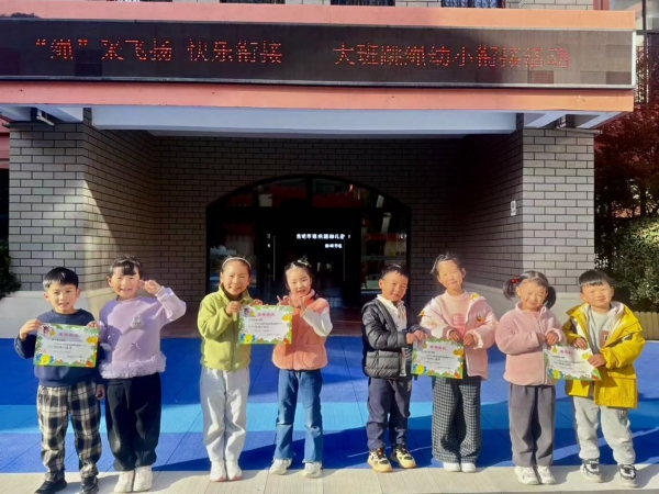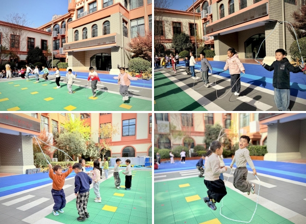 跳绳是小学生必备的运动技能,大班幼儿正处于幼小衔接关键阶段。为进一步激发幼儿跳绳兴趣、提升跳绳技能,结合大班幼小衔接工作计划,落实《3—6岁儿童学习与发展指南》健康领域中大班幼儿“能够连续跳绳”的发展目标,2025年11月24日至28日,合肥市宿州路幼儿园教育集团湖畔分园面向全体大班幼儿,开展了“‘绳’采飞扬,快乐衔接”特色幼小衔接系列活动。