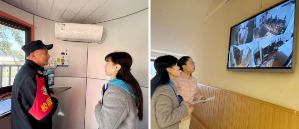 督学紧扣通知明确三大重点任务,逐项细致核查。在校园安全方面,重点检查了“一键报警”设备的实际运行状态,确认设备响应及时、联动高效,确保突发情况下能快速处置;针对“校园餐”专项整治要求,实地查看了食堂外部监控大屏,详细了解食品加工制作、留样管理等关键环节的全程可视化监管情况,强调要严守食品安全底线。