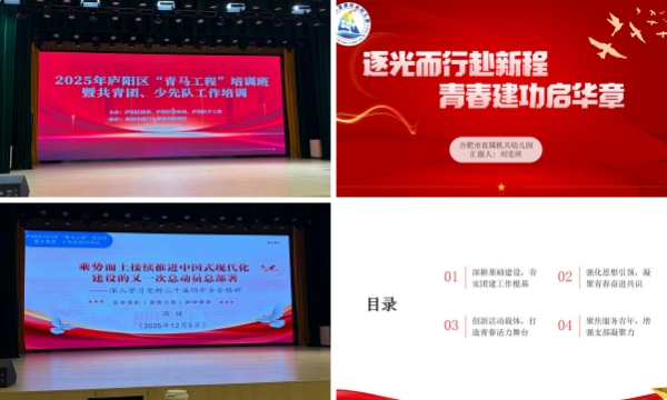 为切实推动共青团和少先队工作向纵深发展,进一步提升共青团、少先队工作者的政治素养、业务能力,以更好地适应新形势,2025年12月5日,合肥市庐阳区“青马工程”培训班暨共青团、少先队工作培训及述职评议会在合肥市南门小学森林城校区南区正式举行。合肥市直属机关幼儿园团支部书记刘雯琪、鹤琴分园团员教师张晓涵参加了此次活动。