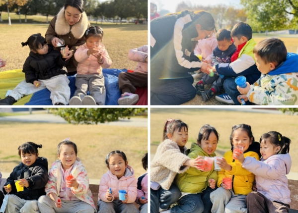 一场奇妙的科学实验正在庐州公园热闹的开展起来,中七班的孩子们分组操作,用量勺将吸水树脂装入透明杯,通过滴管加水后,原本细小的颗粒迅速膨胀成“雪花”状;再滴入红、黄、蓝等不同色素搅拌,透明的“雪”立刻变成了五彩的“雪宝宝”,捧在手心像握住了一团柔软的彩虹。