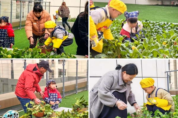 活动尾声,一场充满乐趣的丰收劳作在四楼种植区拉开帷幕,家长与幼儿携手参与拔菜活动。现场欢声笑语不断,孩子们在家长的陪伴下亲手拔起成熟蔬菜,感受劳作的艰辛与丰收的喜悦,在实践中体悟劳动意义;家长们则在互动中深入感受园所劳动教育氛围,进一步拉近家园心灵距离。