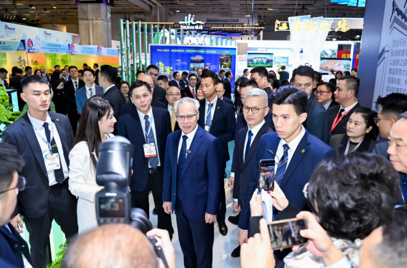 金秋送爽,濠江欢歌。2025年10月22日,由澳门贸易投资促进局主办的第30届澳门国际贸易投资展览会(MIF)在澳门隆重开幕。为深化皖澳全方位合作,助力安徽企业融入粤港澳大湾区、拓展葡语国家市场,安徽省精心组织22家代表性企业,以“皖链中外•智创未来”为主题,在180平方米的特装展区内精彩亮相,集中展示安徽在大健康、智能制造、绿色农业等领域的创新成果与合作机遇,续写徽风皖韵的开放新篇章。开幕当天,澳门特别行政区行政长官岑浩辉先生亲临安徽馆考察,与展商亲切交流。众多专业观众与采购商也纷纷莅临安徽馆洽谈合作,展馆内人流如织,气氛热烈。