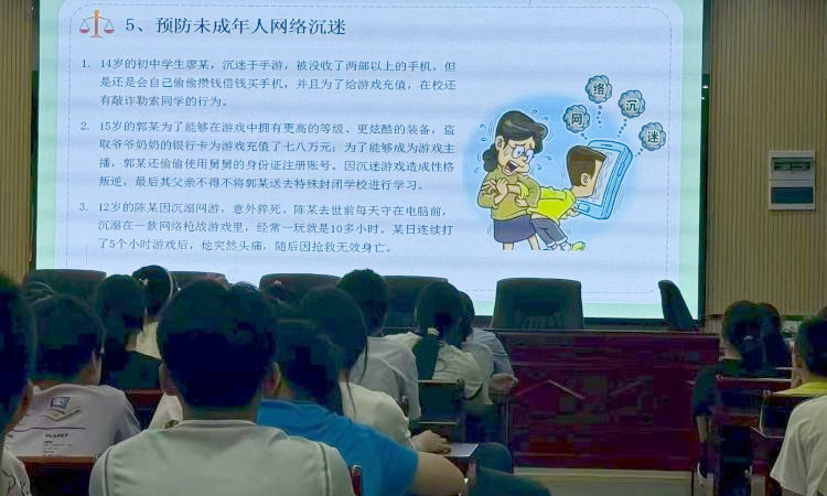 在案例分享环节,汪医生列举了多个真实且触目惊心的案例。14岁的初中生廖某,沉迷手游,即便手机被没收,仍偷钱借钱买手机,甚至为给游戏充值在学校敲诈勒索同学;15岁的郭某为在游戏中获取更高等级和炫酷装备,盗取爷爷奶奶银行卡里七八万元,还冒用舅舅身份证注册账号,最终因沉迷游戏性格叛逆,被父亲送往特殊封闭学校学习;12岁的陈某因沉溺于网络枪战游戏,每天在电脑前一玩就是10多小时,某次连续打5小时游戏后,突发头痛,最终抢救无效身亡。这些案例让同学们深刻认识到网络沉迷的严重后果,不少同学在听到这些案例时,都露出了惊讶和沉思的表情。