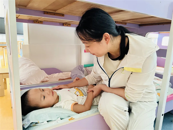 午睡时,在老师轻柔的故事声和安抚下,宝贝们渐渐进入了甜美的梦乡。虽然有个别宝贝会有些想家,但老师像妈妈一样,轻轻拍着他们的背,给予他们温暖的陪伴,让他们感受到幼儿园这个“大家庭”的爱。