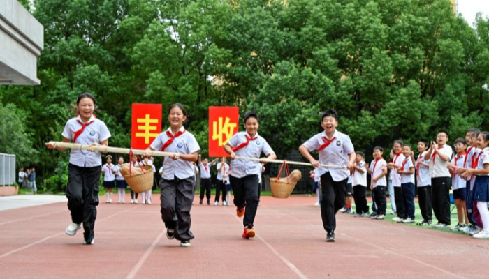 秋分时节,天高云淡。2025年9月18日上午,在中国农民丰收节到来之际,合肥市六安路小学荣城花园分校别开生面地举办了"校园丰收节,趣味运动会"主题活动,通过创意十足的体验方式,让学生们在欢乐中感受丰收喜悦,树立节约意识。