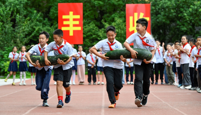 小选手们或怀抱南瓜,或两人合作共挑冬瓜,或推着满载玉米的独轮车,全力以赴向终点前进。啦啦队的加油声此起彼伏,现场气氛热烈。谢博轩同学赛后兴奋地表示:“搬运这些沉甸甸的瓜果,让我真切体会到农民伯伯的辛苦,更懂得了‘粒粒皆辛苦’的含义。”