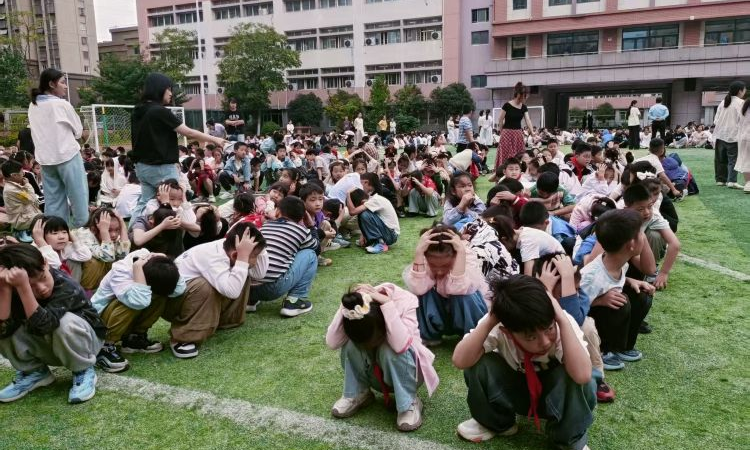 为加强学校的安全管理,提高全校师生的安全意识,提高师生防范、自救能力,增强应对突发事件的组织、协调等能力,2025年9月18日上午9:18,合肥市六安路小学荣城花园分校开展了“9·18” 防空应急疏散演练活动。