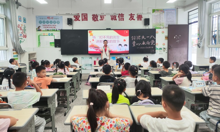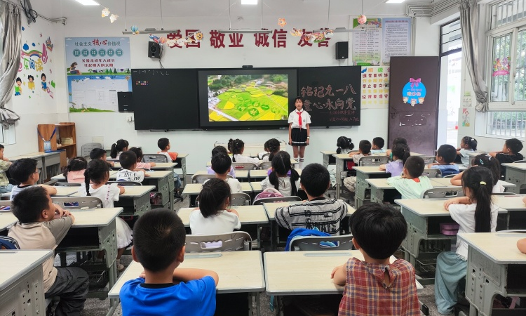 为深切缅怀革命先烈,弘扬伟大抗战精神,激发广大师生的民族自豪感和历史使命感,在中国人民抗日战争暨世界反法西斯战争胜利80周年与“九一八”事变纪念日来临之际,黄山区甘棠中心学校组织全校师生,共同参与了以“弘扬伟大抗战精神 做光荣自豪中国人”为主题的全国大中小学生同上一堂思政课及“九一八”爱国主义教育红色故事宣讲系列活动。