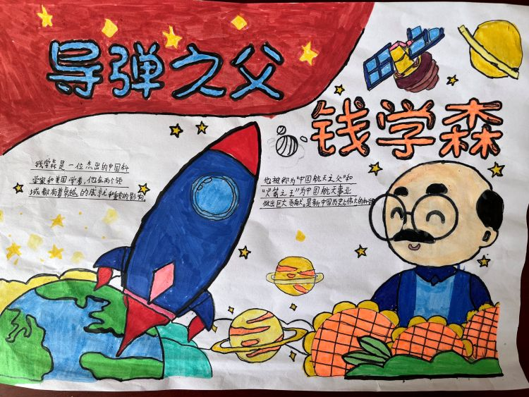 三、四年级的同学化身“小小设计师”,亲手制作了精美的“伟人名片”手抄报。从“导弹之父”钱学森,到“杂交水稻之父”袁隆平……一位位光辉的伟人形象在孩子们的画笔下变得生动鲜活。图文并茂的手抄报,不仅锻炼了同学们的动手能力,更让他们深刻了解了伟人们的丰功伟绩与崇高精神。