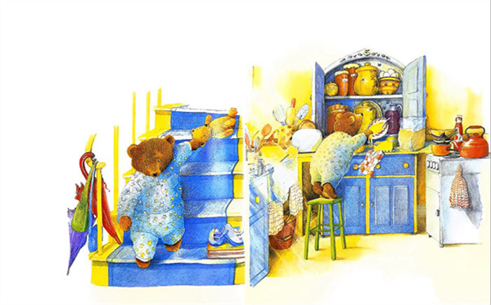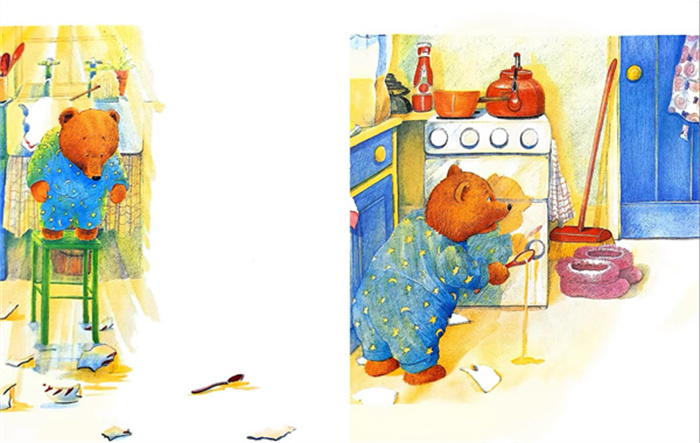 今天,阿力早早地起了床。他跑下楼来到厨房,“我要给妈妈做早餐,烤面包,抹蜂蜜,她一定爱吃!”阿力去拿盛蜂蜜的碗……