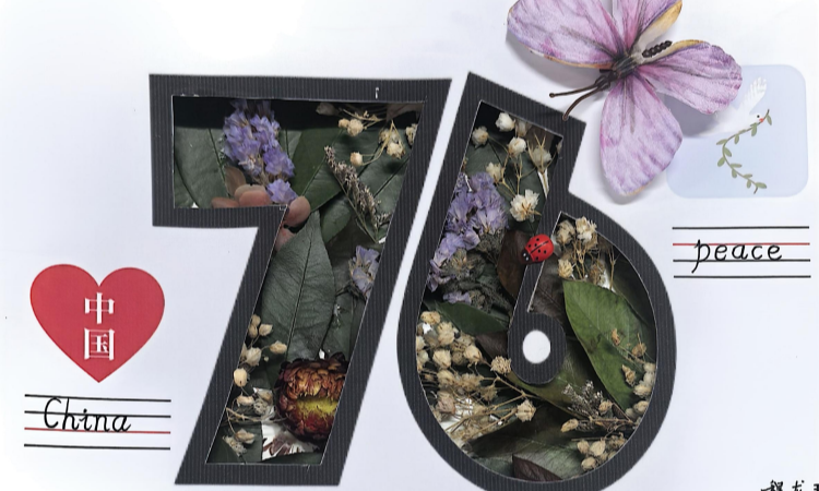 三年级以"76周年"为主题,在老师的指导下先掌握"China""peace"等核心词汇。假期里,孩子们化身"自然收藏家",捡拾金黄的银杏叶、火红的枫叶,细心压平后铺满模板。