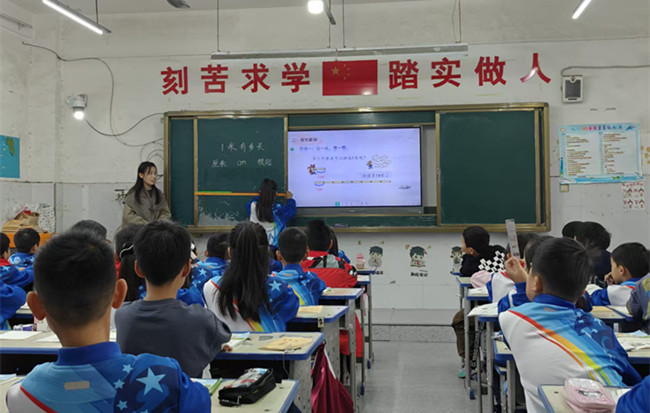 活动以精彩的课例展示为主线。首先,来自曙光中心学校的丁娜娜老师带来了一年级的《一米有多长》。丁老师的课堂充满活力与趣味,她巧妙地将抽象的数学概念与学生的生活实际紧密结合。通过引导学生观察米尺、用手臂丈量、猜测并验证身边物体的长度等一系列生动有趣的实践活动,让学生在亲身体验和感知中,真正建立起“米”的长度观念。整堂课学生参与度高,在“玩”中学,在“做”中思,充分体现了“学生是学习主体”的教学理念,赢得了听课老师们的一致好评。