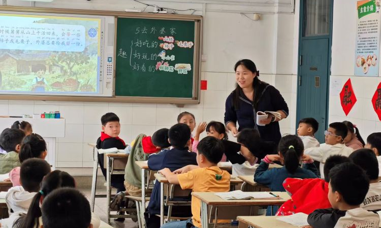 活动伊始,刘晓雪主任执教二年级课文《去外婆家》。课堂上,刘晓雪紧扣低年级学生特点,引导学生由学习短语到仿写句子、再到最后交流自己相同的经历,层层递进,提升了孩子们的思维能力。孩子们在朗读中感悟,课堂氛围生动而有序,充分展现了语文学习的趣味性与感染力。