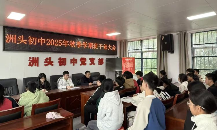 为强化班级自治管理,营造整洁有序的校园环境,近日,宿松县洲头初中召开2025年秋季学期班干部卫生与纪律管理专题大会,政教处和团总支及全体班干部参会。