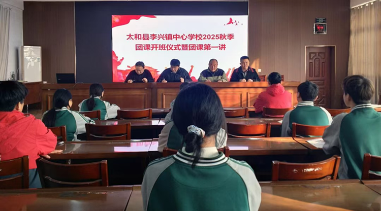 为加强共青团组织建设,进一步引导青年学生坚定理想信念、筑牢成长根基,10月21日,太和县李兴镇中心学校在学校四楼会议室举行2025年秋季团课开班仪式暨第一讲。校党总支书记阮新华、党支部书记孙玉邦、副校长范祥虎出席活动,全体团员及入团积极分子参加。仪式由校团委书记刘浩然主持。