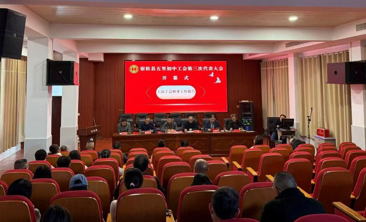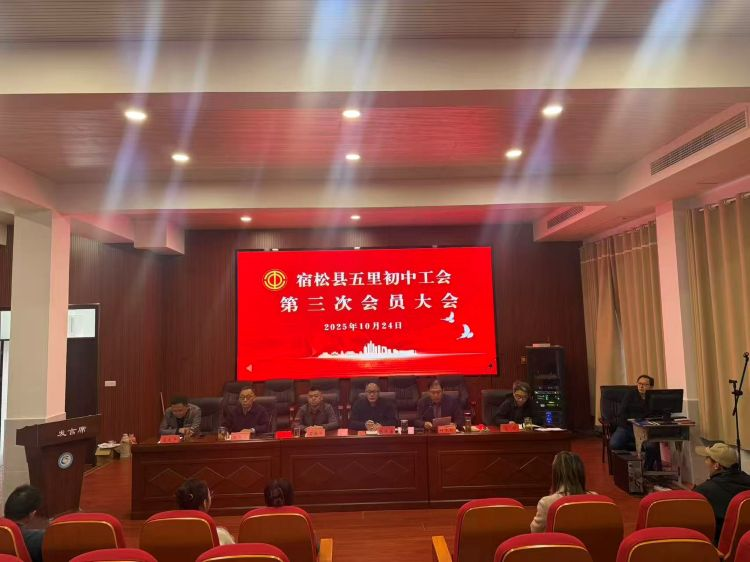 10月24日,宿松县五里初中工会第三次会员大会在学校综合楼多媒体会议室召开,县教育工会委员石雅平出席大会并讲话。校全体工会会员参会,会议由校党支部副书记叶克松主持。