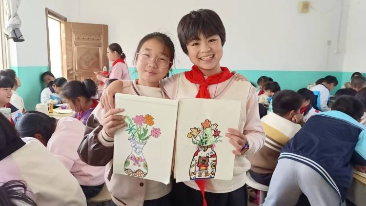 下午,班主任程琪老师引领同学们吟诵田园诗歌,刘玲老师带领同学们走到室外开展美术创作。果然,走出课堂,来到大自然之中,孩子们的灵感一发不可收,一首首古诗朗诵得声情并茂,一幅幅图画创作得栩栩如生。让同学们切身体验到了与平时在校园里不一样的快乐。
