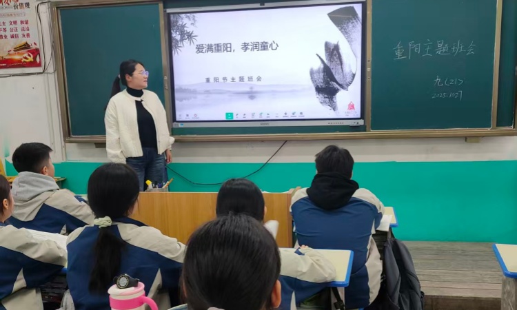 下午班会课,各班级开展“爱满重阳,孝润童心”主题班会,让传统文化在课堂中焕发生机。班会课上,老师们通过生动的讲解、鲜活的案例,带领同学们追溯重阳节的由来——从古老的祭祀活动到如今的敬老节日,从“登高赏菊”到“遍插茱萸”,一个个传统习俗背后的文化故事被娓娓道来。同学们认真聆听、积极互动,在沉浸式学习中深入了解节日内涵,更在心中播下了传承孝道、尊重长辈的种子。