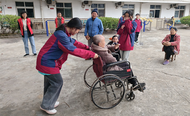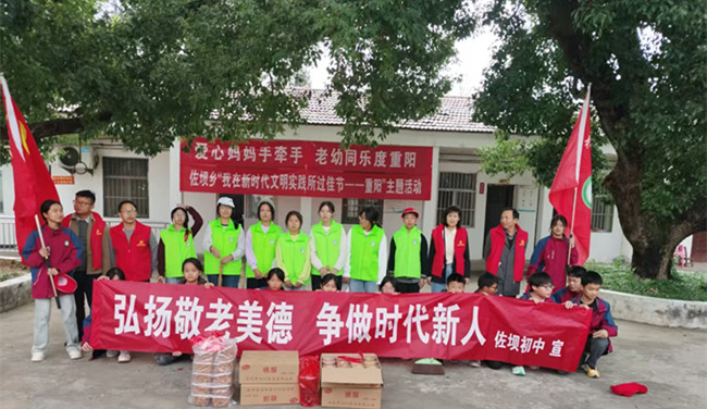 为弘扬中华民族尊老、爱老、敬老、助老的传统美德,培养当代中学生的社会公德意识及社会实践能力,10月29日,宿松县佐坝初中党支部组织学生代表共20余人,在带队教师的带领下,前往佐坝乡敬老院,开展了一场以“情暖重阳,爱驻夕阳”为主题的爱心志愿服务活动。活动当天,师生们到达敬老院后,先是给老人们发放节日慰问品,分楼层、逐房间,人手一份。而后,学生们分组进行了卫生清洁、陪伴关怀和才艺表演。卫生清洁组擦拭老人房间的桌椅、窗台、扶手,折叠衣物,清扫公共区域地面,整理杂物。陪伴关怀组进入老人房间,陪老人聊天,为老人捶背、按摩肩颈,询问老人感受。才艺表演组在敬老院公共场地开展小型才艺表演,节目以温和、喜庆为主,表演过程中,学生们主动邀请老人观看,并与老人互动。