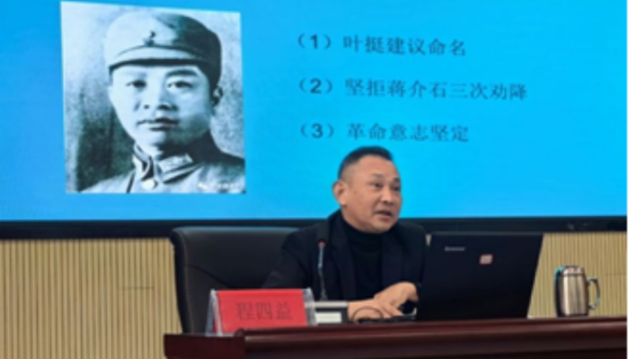 程四益在报告中号召全体同学要铭记革命历史,珍惜当下幸福生活,将“铁军”精神融入日常学习和生活,坚定理想信念,锤炼过硬本领,以昂扬的姿态接过历史接力棒,努力成长为担当民族复兴大任的时代新人,用实际行动放飞青春梦想,为实现中华民族伟大复兴梦贡献力量。