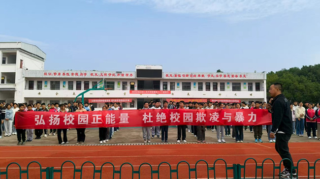 为有效预防校园欺凌事件的发生,增强学生的安全意识和自我保护能力,营造和谐、友善、安全的校园环境,11月10日,宿松县新前初中全体师生齐聚操场,举行了一场意义非凡的预防校园欺凌国旗下讲话暨集体签字活动。