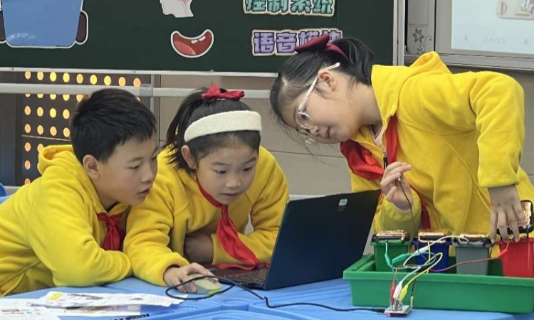 管吉敏老师以“科技赋能环保”为核心设计信息技术课堂。通过趣味动画拆解AI技术原理,用“给虚拟垃圾桶装‘智慧大脑’”的比喻,让四(5)班的学生快速理解技术逻辑;随后进入实践环节,学生化身“AI垃圾桶搭建师”,一个个兼具创意与实用性的AI垃圾桶设计方案相继诞生;最后,学生们轮流展示作品,讲解设计理念,家长们纷纷用手机记录下孩子的精彩分享瞬间。这堂信息科技课不仅让学生掌握了AI基础操作技能,更通过亲子共创的形式,将信息科技与环保教育、家校共育深度结合。不少家长表示:“第一次近距离看到孩子在信息科技课上的专注与创造力,这种‘动手做+玩中学’的模式特别好!”