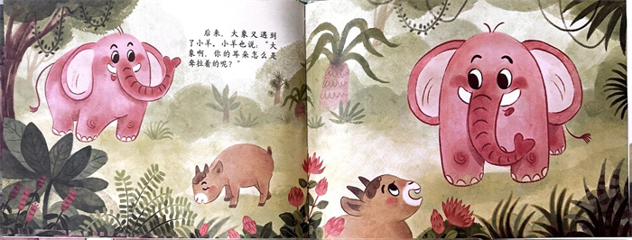 后来,大象又遇到了小羊。小羊也说:“大象啊,你的耳朵怎么是耷拉着的呢?”