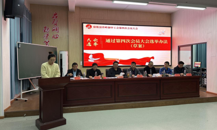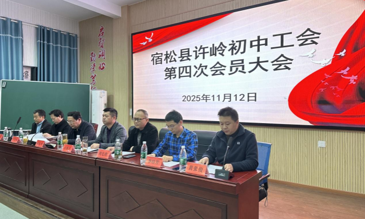 2025年11月12日晚上,宿松县许岭初中工会第四次会员大会在学校报告厅召开。县教育工会委员石雅平出席大会并讲话。会员64人参会。会议由校党支部纪检委员、副校长黄张俊主持。